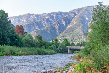 scenic view to river Adige in the Alps at San Michele del Adige, Italy