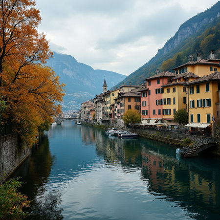 View of the river Lago Maggiore in the city of Bergamo, Italy