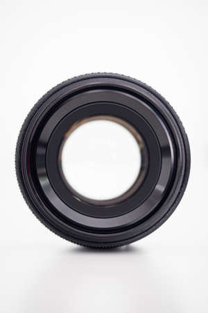 High-aperture camera lenses with reflections, low key image. High-quality photographic lens close photographed.