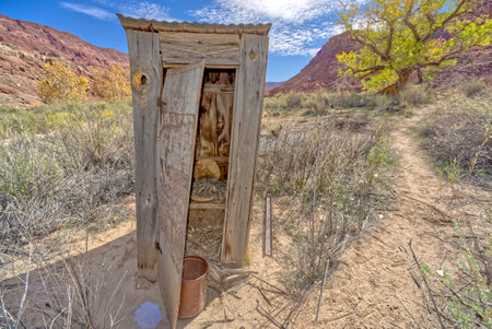 An old Outhouse along the Paria River at Lonely Dell Ranch in Vermilion Cliffs National Monument Arizona.