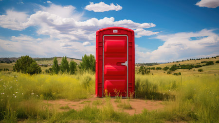 A unique outdoor toilet situated amidst a lush green forest, combining modern design with rustic charm. Ideal for nature lovers seeking tranquility.
