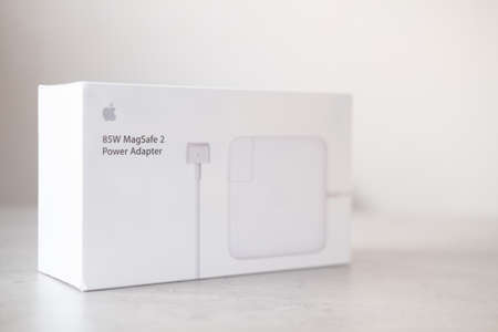 Samut Prakan, Thailand - April 30 2020 : 85W MagSafe 2 Apple Power Adapter in box for charger MacBook Pro