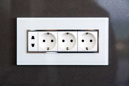 Background from home electric sockets, close-up. The concept of tariffs and prices for electricity. device