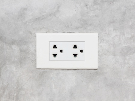 A close-up view of a white electrical outlet featuring two ports, installed on a textured gray wall, showcasing modern and minimalist home design aesthetics.