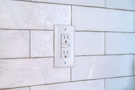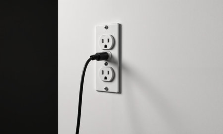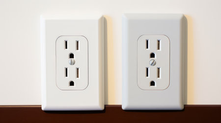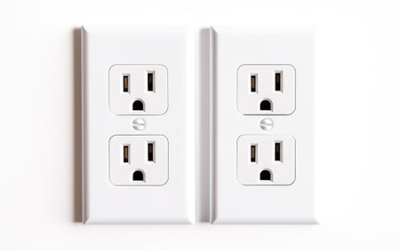 Close-up of a white power plug socket on a smooth wall, showing clean lines and modern design.