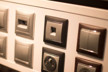 Store socket and switch display of productrs on sale on wall demonstration models for customers