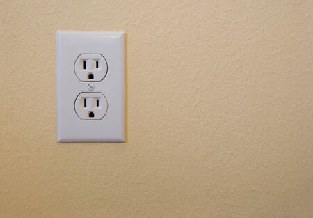 The electrical socket on the yellow cement wall, power supply, electrical outlet