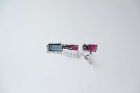 Electrical Wiring under plaster, hidden installation cables for socket to a concrete. Renovation, Repair and development of home and apartment concepts