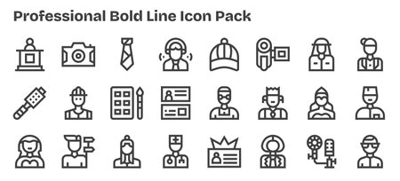 A versatile set of 24 Bold Outline vector icons focused on Professional, ideal for mobile and web applications.