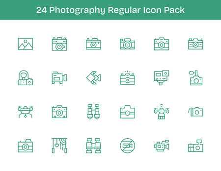 This set of 24 Regular Outline icons captures Photography themes, perfect for tech and business applications.
