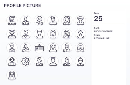 Design confidently using 25 Regular Line icons themed around Profile Picture, with unified styling.