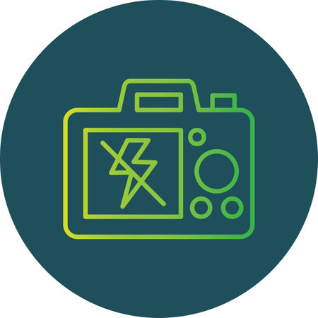 Camera and battery line icon in flat style. Photo camera vector illustration on white isolated background. Camera business concept.