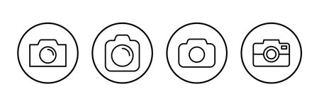 Black line Photo camera icon isolated on white background. Vector Illustration