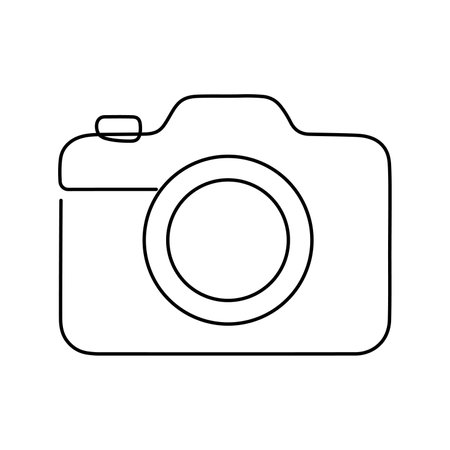 Camera in one line art style. Camera drawing with editable black stroke on a white background. Vector illustration.