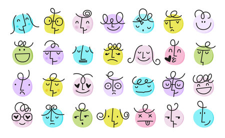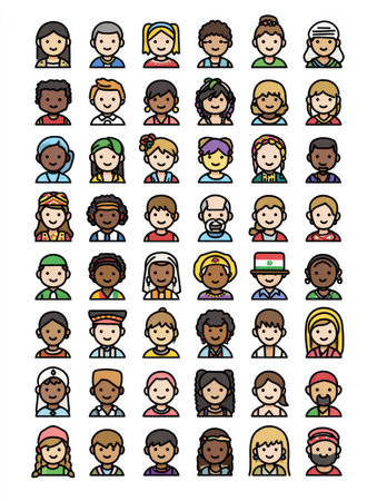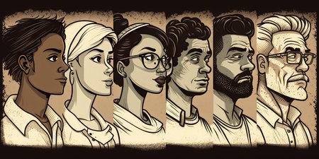 This illustration showcases a collection of diverse portraits, each representing a unique individual. The images are rendered in a clean, graphic style with soft colors and line art. The composition suggests a community of people, suitable for projects needing inclusivity and representation in media.