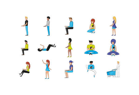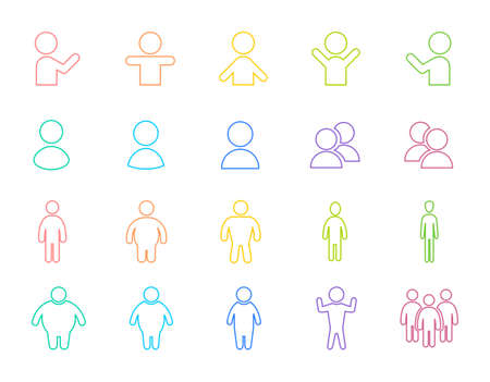 Colorful and pop human line drawing icon. Stylish icon in pastel color. Set of illustrations of human shapes of various body types.