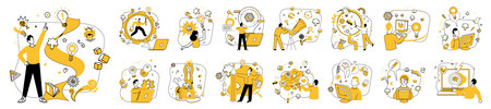 A collection of line art illustrations featuring diverse professional men and women, suitable for user profiles or business representations.
