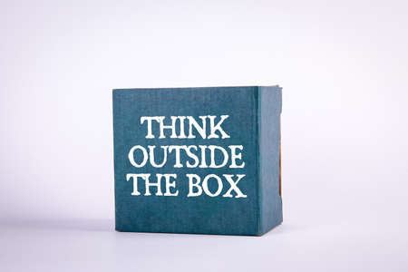 Brown cardboard box written with text THINK OUTSIDE THE BOX