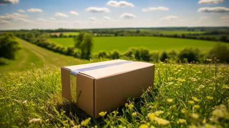 Postal service, home delivery and online shopping, parcel box in the countryside on a sunny day, post-processed, generative ai