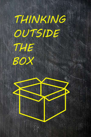 Concept of Thinking Outside the box drawn with yellow chalk on a blackboard