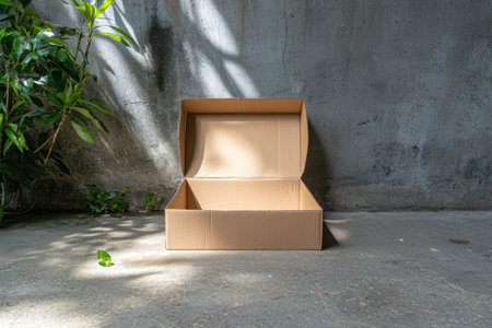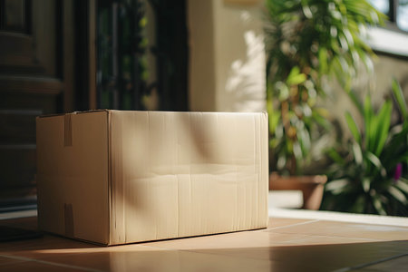 Sunlit shadows dance on a group of neatly stacked cardboard boxes, creating an intriguing interplay of light and texture. Experience a moment of simplicity and elegance. Generated AI