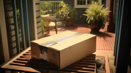 Parcel carton box at the entrance door. Post delivery service cardboard order. Generate ai