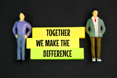 two miniature people and colored paper with the words TOGETHER WE MAKE THE DIFFERENCE