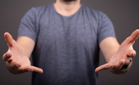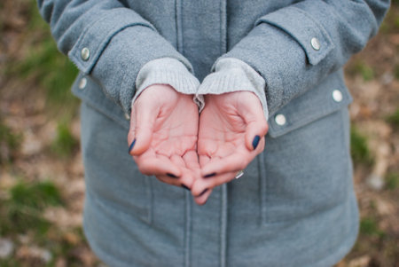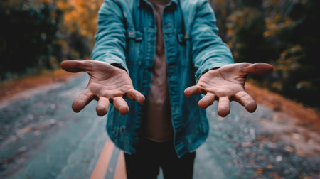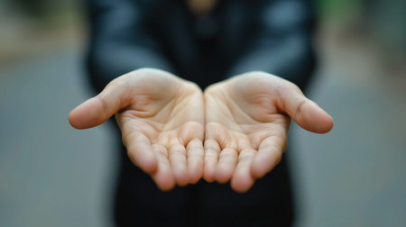 A close-up of open hands presented forward, as if offering or requesting something, with a blurred background adding focus.