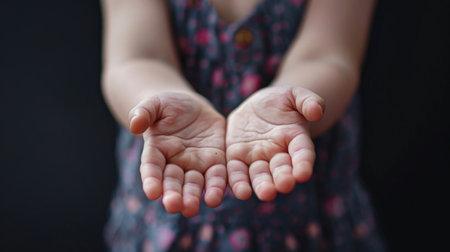 Tender girl's pale hands making a cupping gesture. Open palms. Empty. Close-up. Concept (idea).