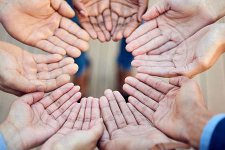 Everybody can help somebody. Cropped shot of a large group of unidentifiable people cupping their hands together.