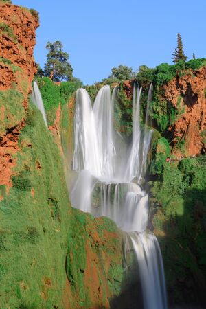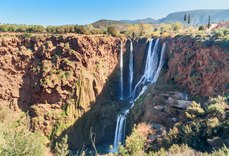 Spectacular waterfalls from Ouzoud Marrakech,Morocco. Nature background, clear and fresh water in a sunny day.