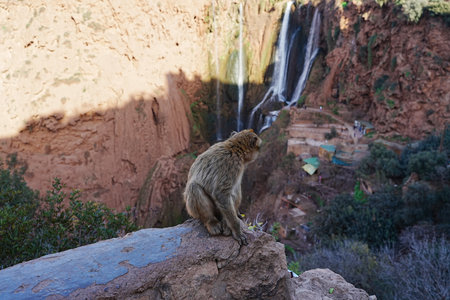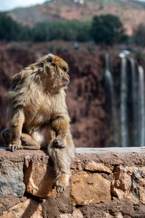 Berber monkey in the ouzoud waterfalls area, morocco