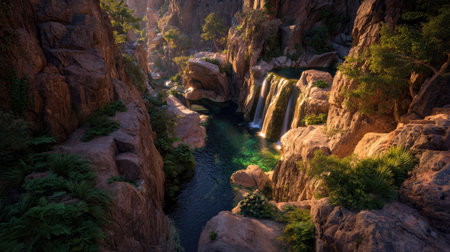 Illustration of a waterfall in the canyon. Created with Generative AI