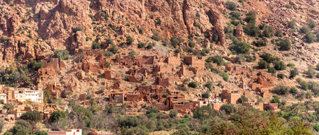 Beautiful little village Oumesnat with typical clay houses in the Anti-Atlas mountains of Morocco