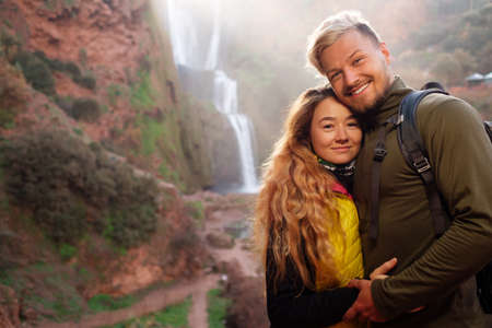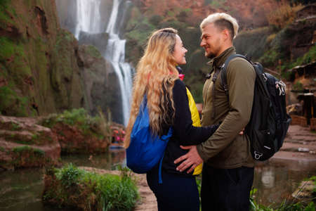 Adventurer couple near Ouzoud waterfall in Morocco