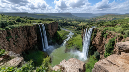Waterfall in the mountains of Ethiopia. Africa. Toned, Ouzoud waterfalls, Grand Atlas in Morocco, AI Generated