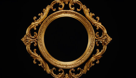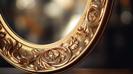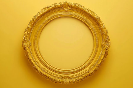 Elegant empty circular ornate gold frame for art display or interior design