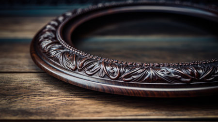 beautiful intricate metal detector frame with ornament on wooden desk, created with generative ai