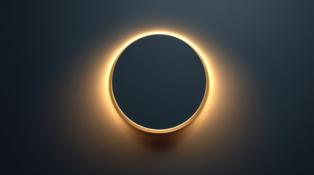 A serene circular mirror radiating a soft glow against a dark backdrop, perfect for enhancing modern decor and creating a tranquil atmosphere in any space.
