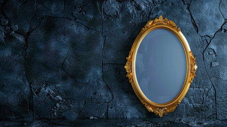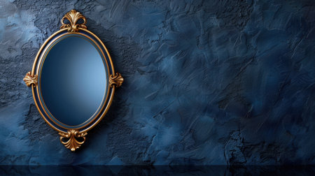 Discover a stunning gold framed mirror set against a rich dark blue textured background, perfect for enhancing home decor and interior design projects.