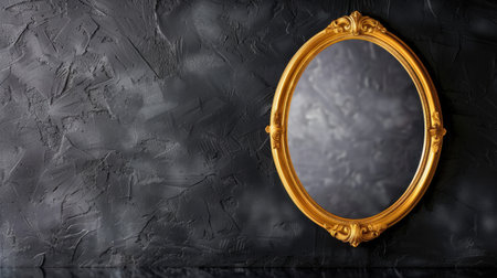 A stunning vintage mirror framed in an ornate gold design rests against a textured dark wall, creating a striking focal point for any interior space.