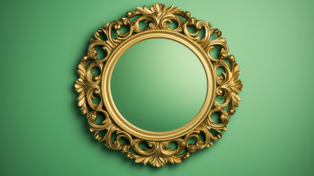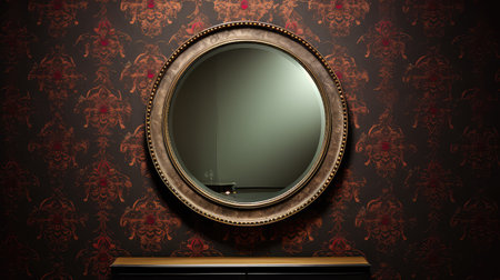 Antique vintage blurred mirror on wall with wallpaper, retro vintage design space for text