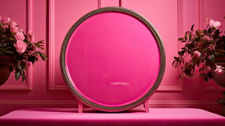 Stylish round mirror. Wall house. Generate Ai