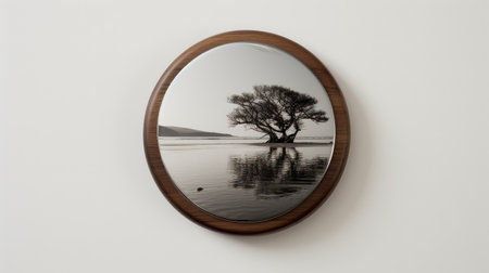 the mirror stands alone against a simplistic white background, its sleek reflective surface capturing the viewer's attention in this minimalist photography composition, showcasing the beauty of simplicity and the elegance of a solitary object in a clean and uncluttered environment. ai generated