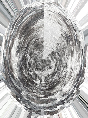 abstract 3d render background with circular shape and irregular metallic texture.