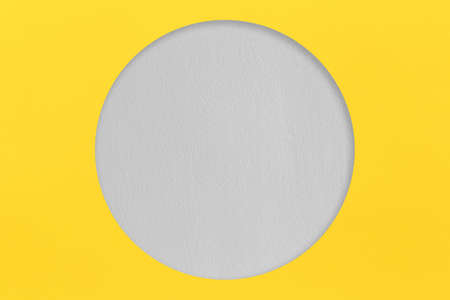 Yellow paper is placed on top of the Gray paper and circle shape for design in your work background concept.