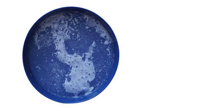 top view detergent in a blue plastic bowl on a white background, object, clean, copy space