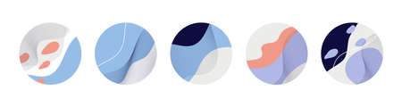 Abstract trendy dynamic background set. Round illustration, design element, decorative vector circle. Geometric pattern, fluid splash, drop, liquid, holography, line and curves. contemporary art icons
