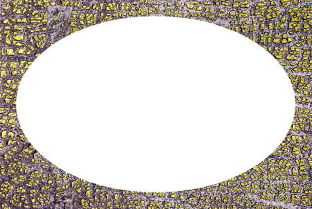 Photo frame white oval in center abstract background of old yellow paint residue