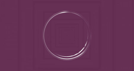 Displaying glowing circular ring receding into purple background, with concentric square frames. Futuristic, abstract, digital art, vibrant, depth, geometry, modern